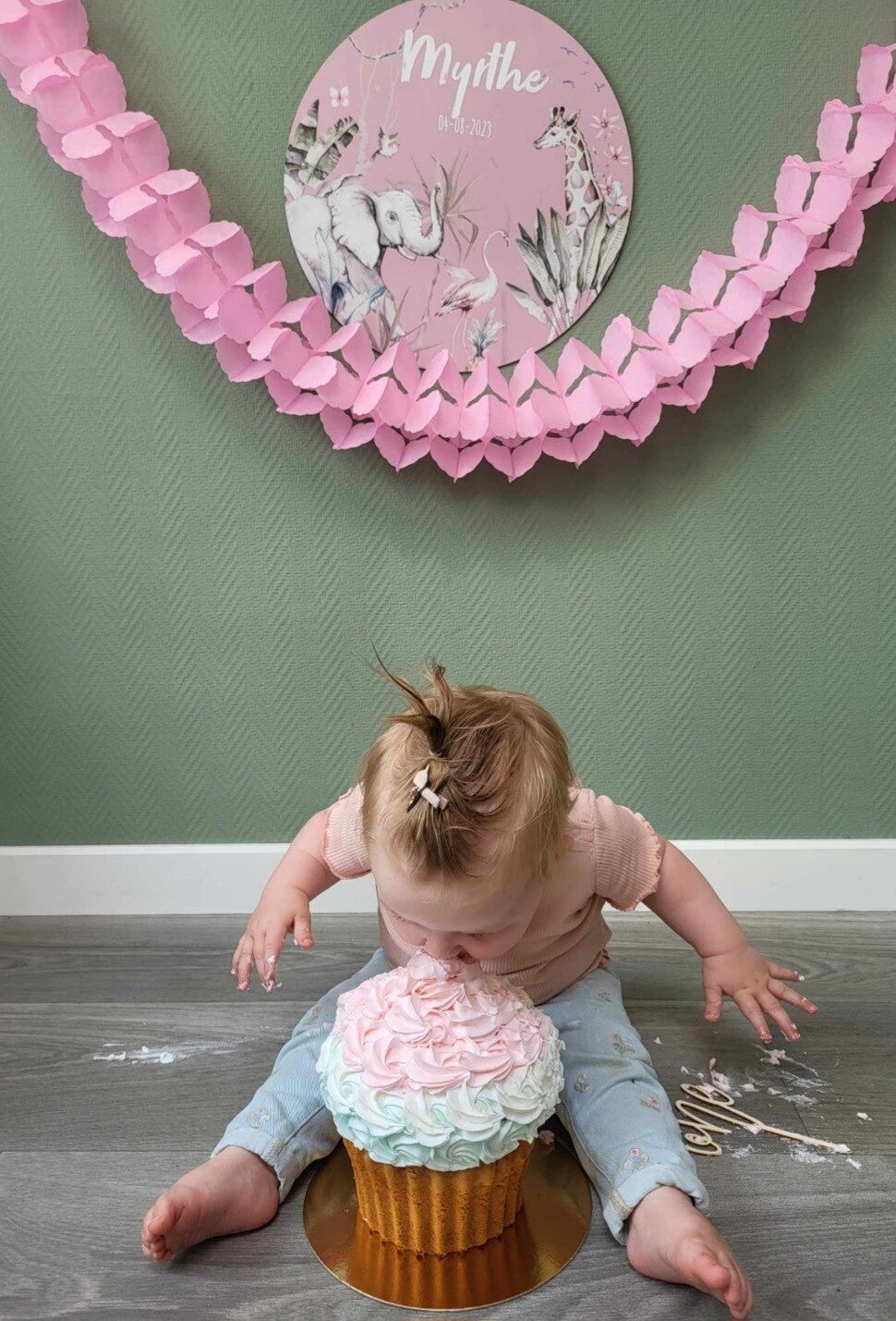 Smash cake (grote, maar zijn altijd groot lijkt me voor meisje 1 jaar